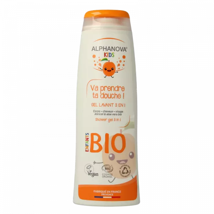 De Alphanova Kids Bio Shower Gel 3-in-1 is speciaal ontwikkeld voor de gevoelige huid van kinderen. Deze veelzijdige douchegel biedt een zachte reiniging voor gezicht, haar en lichaam. Verrijkt met biologische ingrediënten zoals aloë vera sap, kamille en zoete amandelolie, zorgt het voor een milde en hydraterende ervaring. De heerlijke zoete geur van vanille en abrikoos maakt het badderen tot een plezierige ervaring voor de kleintjes.