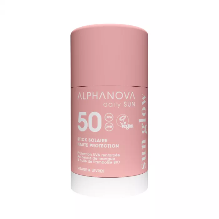 De Alphanova Daily Sun - Face Sun Stick SPF50 Sun Glow is een innovatieve zonbescherming die speciaal is ontworpen voor het gezicht. Deze zonbeschermingsstick biedt een hoge bescherming tegen schadelijke UV-stralen en is gemakkelijk aan te brengen dankzij de handige stickformule. Met zorgvuldig geselecteerde exotische ingrediënten zoals biologische mangoboter, frambozenolie en biologische aloë vera-sap, biedt deze stick niet alleen bescherming, maar ook een hydraterende en verzachtende werking. De formule bevat meer dan 74% ingrediënten van natuurlijke oorsprong en 20% biologische ingrediënten, wat het een milieuvriendelijke keuze maakt. De exotische Monoï-geur maakt de ervaring compleet en prikkelt de zintuigen.
