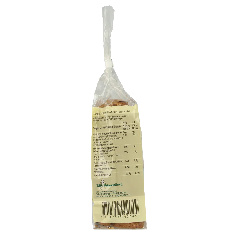 Spelt en haver gezoet met granenstroop is al puur natuur, daarbij zorgen de walnoten, rozijnen en gemberkruiden voor de specifieke smaak.