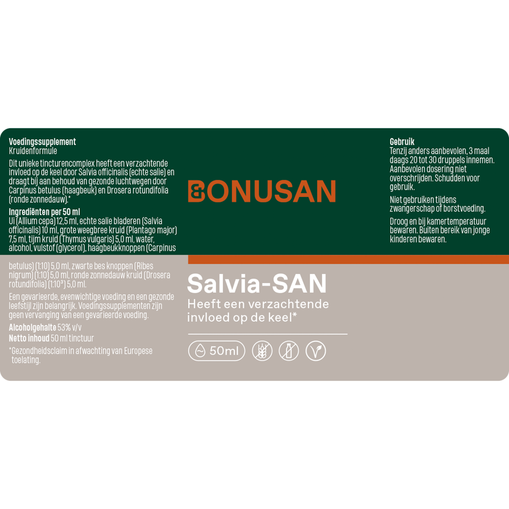 Ingrediënten: Vulstof (water), Drosera rotundifolia (ronde zonnedauw) , glycerinemaceraat van haagbeuk, Glycerinemaceraat van Ribes nigrum (zwarte bes), Plantago major (grote weegbree), Salvia officinalis (echte salie), Thymus vulgaris (tijm), ui (Allium cepa), vulstof (alcohol), vulstof (glycerine).