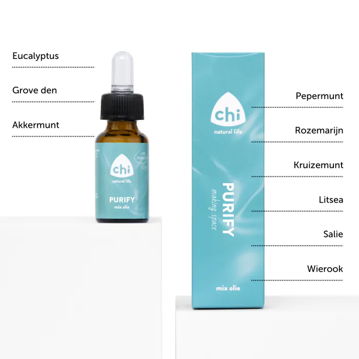 Purify mix olie is een extra sterke mix olie, eigenlijk een versterkte Davos Air kuurolie; de eucalyptus en dennenolie combinatie wordt versterkt door pepermunt, rozemarijn en kruizemunt. De litsea maakt de frisse noot in deze compositie. Salie en wierook completeren deze superfrisse mix voor het snel verbeteren van de luchtkwaliteit. De lucht klaart snel op en de frisheid zorgt voor een adem vrij effect. Gebruik deze mix olie ook eens op de werkplek, voor een instant oppepper!