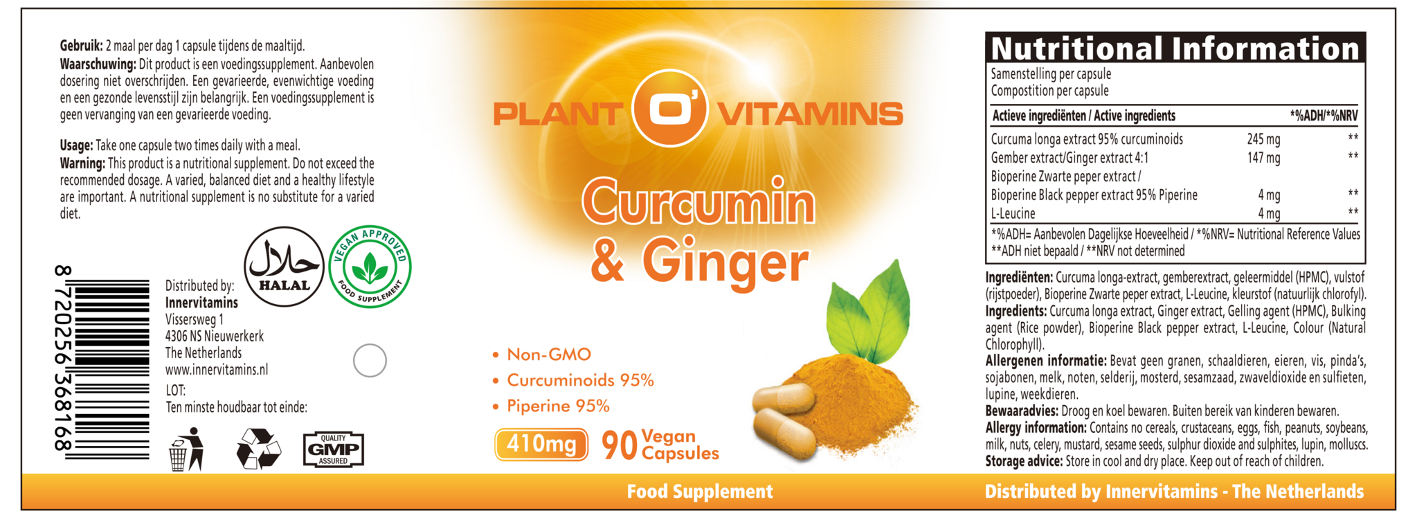Dit product is een samenstelling van Curcumin en Ginger. Curcumin wordt ‘de koningin der kruiden’ genoemd. Ginger is ‘de koning der kruiden’. Door deze combinatie is de werking en opname vele malen beter. Zowel Curcumin als Ginger heeft een rijke historie in de ayurvedische geneeskunde. Ze hebben een krachtige positieve werking op ons lichaam. En doordat er zwarte peper aan dit product is toegevoegd is de opname vele malen sterker.