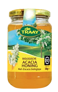 De Traay Honing Acacia Biologisch, voor deze honing verzamelen bijen in het voorjaar de nectar van de bloesem van Acaciabomen in Europa. Door de milde en zoete smaak is hij bijzonder lekker door uw thee/koffie, yoghurt, muesli of in een smoothie.