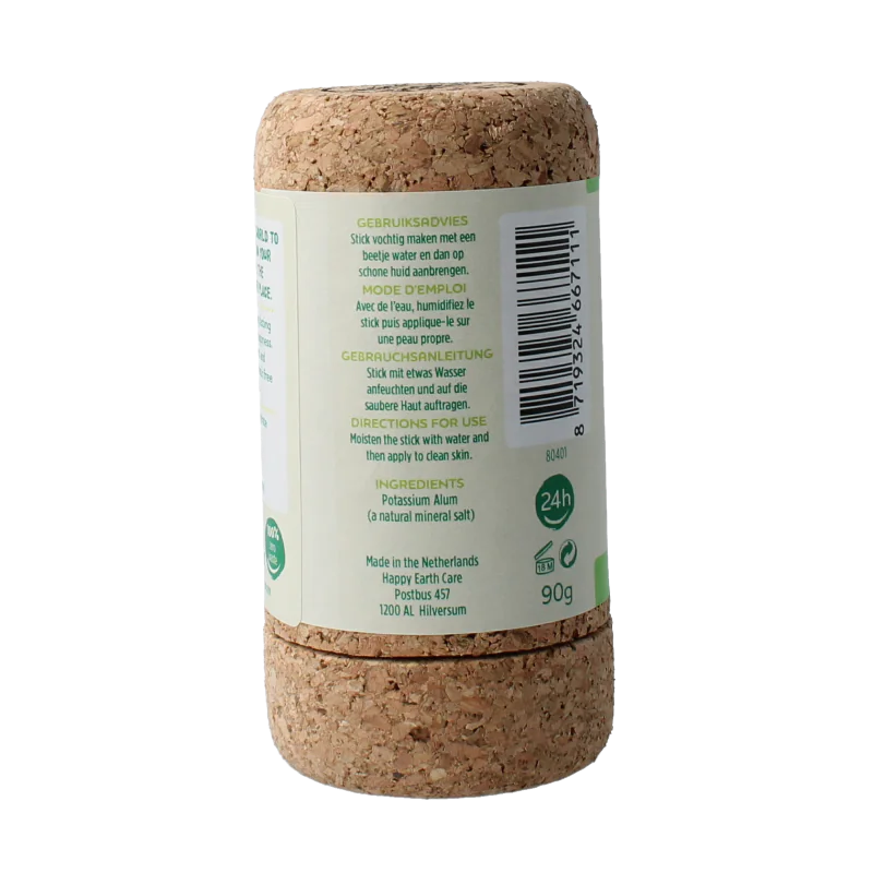 Gebruik: Stick vochtig maken met een beetje water en dan op schone huid aanbrengen. Bij het aanbrengen laat deze een microscopisch laagje achter op de huid. Dit laagje bevat aluin: een mineraal zout dat de bacteriën doodt zonder de poriën te blokkeren of te vernauwen. Je lichaam moet eraan wennen dat je niet langer chemicaliën, maar aluinsteen op je huid gebruikt. Na een week werkt onze deodorant daarom optimaal en blijf je de hele dag natuurlijk fris ruiken!