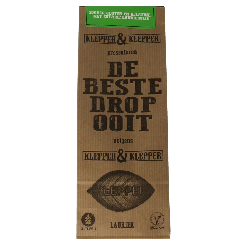 Klepper & Klepper drop laurier is vegan en heeft een bio compostable verpakking.