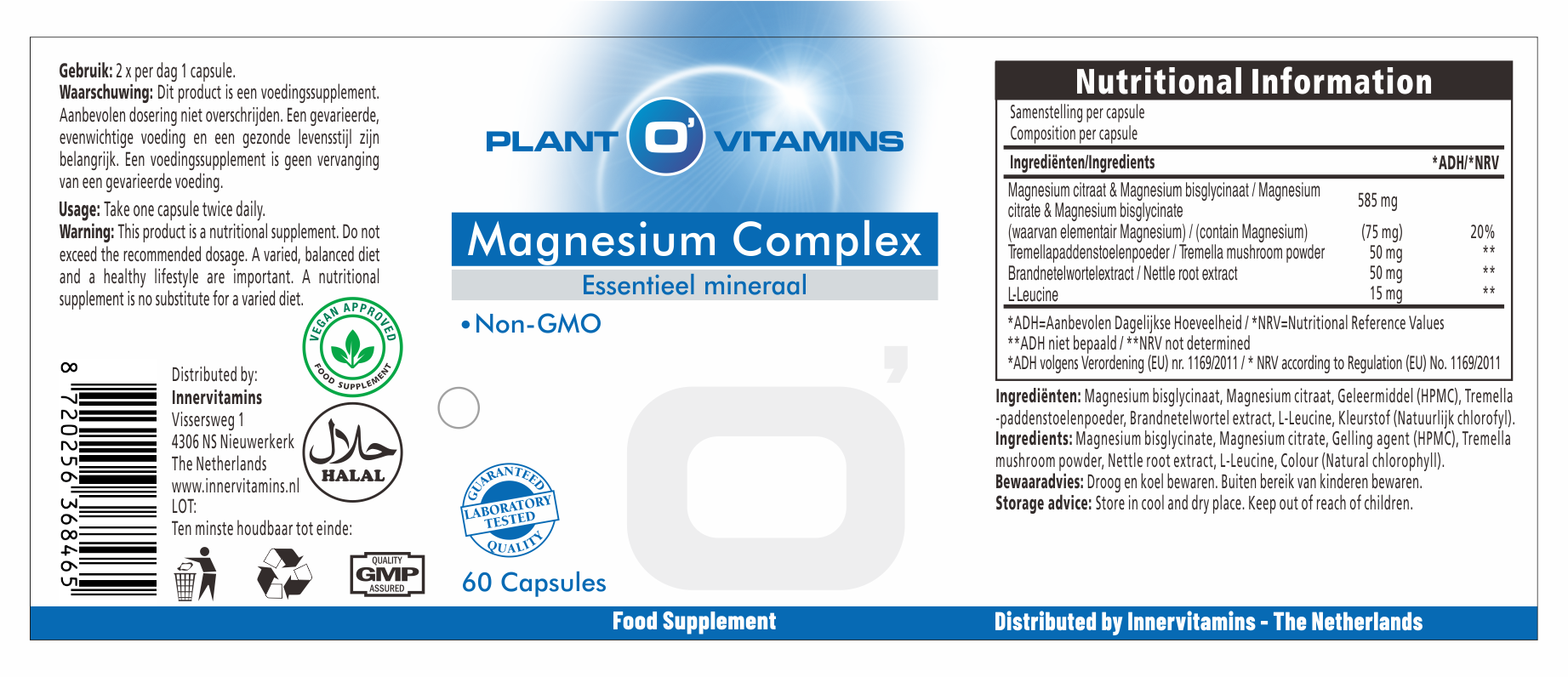 Voor een optimaal resultaat werkt magnesium samen met andere mineralen. Daarom hebben wij brandnetel en Tremella paddenstoel aan het Magnesium Complex toegevoegd. Brandnetel is een bron van mineralen zoals borium, silicium, kalium, ijzer, magnesium en calcium. Allemaal waardevolle bouwstoffen met een gunstig effect op het lichaam, die de opname van magnesium verbeteren.