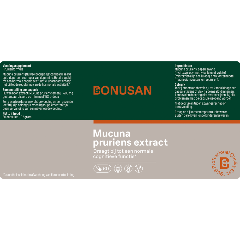 Fluweelboon extract (Mucuna pruriens semen), gestandaardiseerd op minimaal 15% L-dopa 400 mg