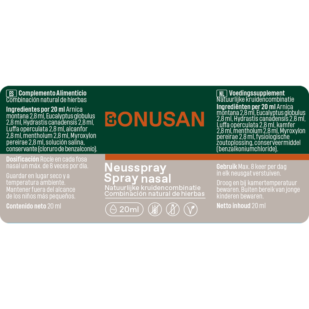 Bij de samenstelling van Bonusan Neusspray is speciaal gelet op de synergistische werking van de bestanddelen. De ingrediënten werden van oudsher en traditioneel ook voor de verzachting van de luchtwegen gebruikt. Bonusan Neusspray heeft een breed werkingsgebied dankzij de zeven verschillende ingrediënten. De neusspray is makkelijk te doseren en toe te dienen. Deze natuurlijke neusspray kan gedurende een langere periode gebruikt worden.