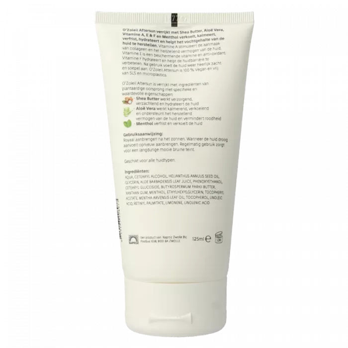O'Zoleil Aftersun is 100% vegan en vrij van SLS en microplastics.