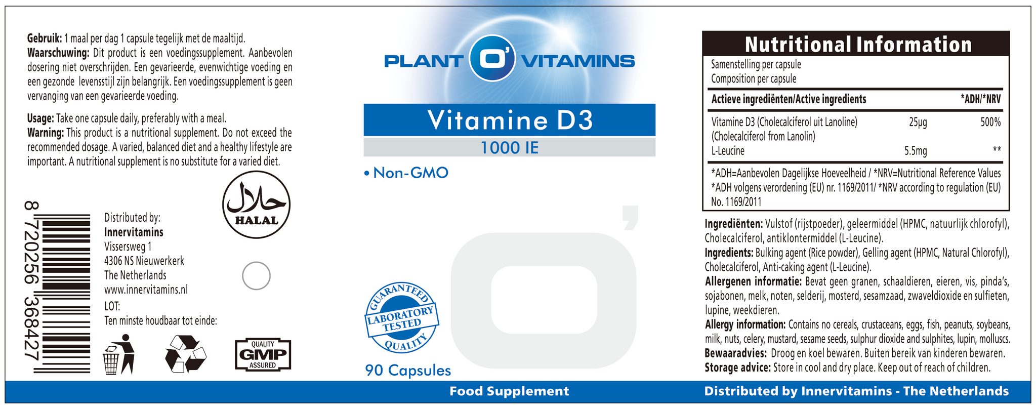 Vitamine D3 1000 IE Plantovitamins 90 capsules